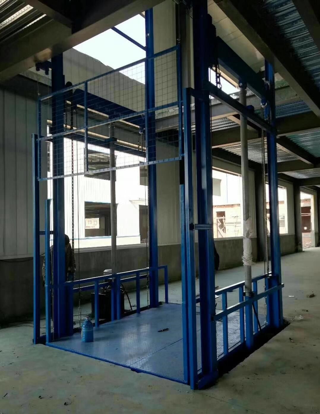 產(chǎn)品簡介:導(dǎo)軌式液壓升降平臺是非常簡單的導(dǎo)軌式液壓升降貨梯,它的工作原理與叉車工作原理類似,由于只有一只油缸,導(dǎo)軌要承受一定的作用力,因此導(dǎo)軌安裝必須牢固,對安裝環(huán)境要求比較高。